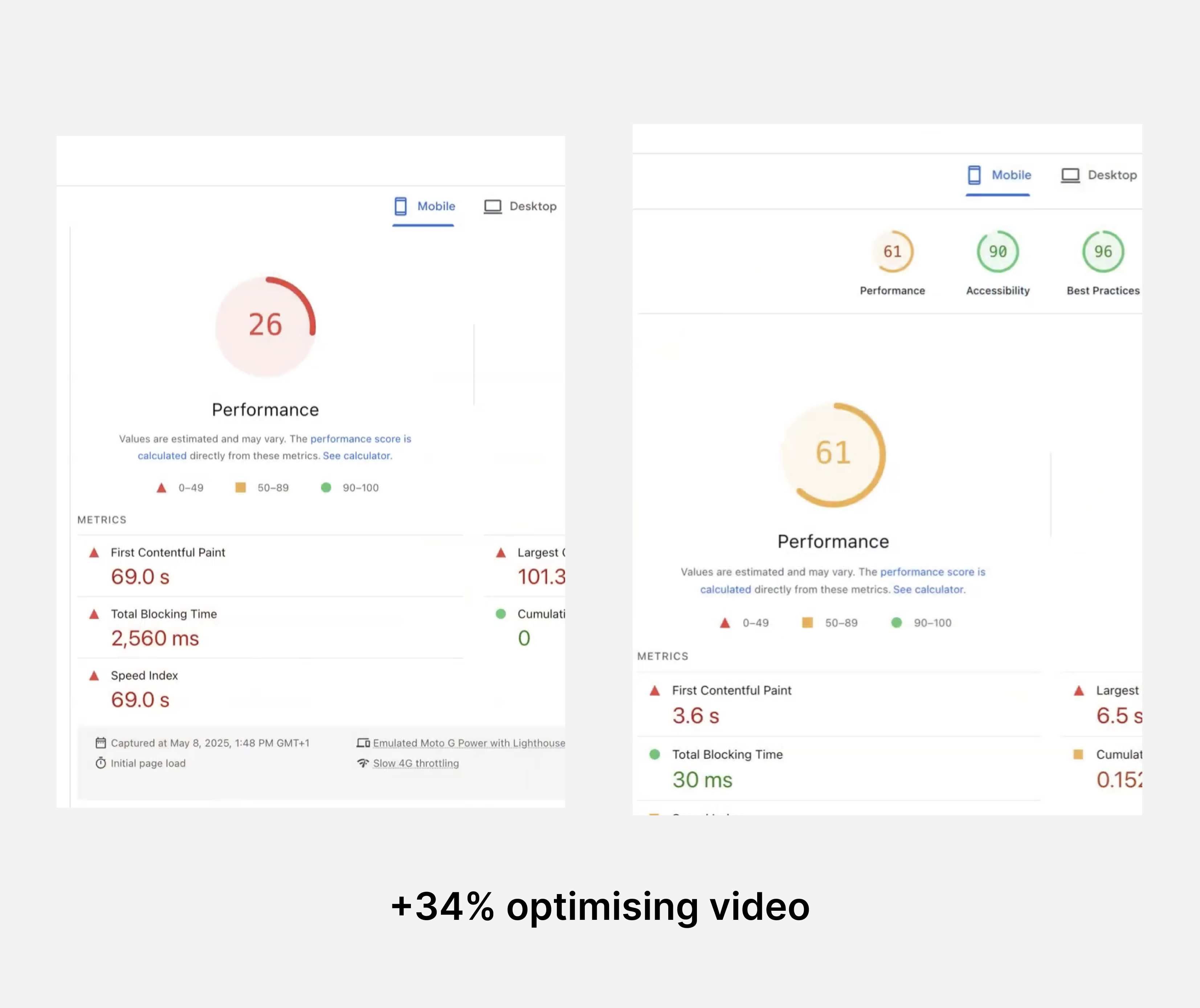 How to improve site speed 34% lazy loading videos. Free code snippet included.