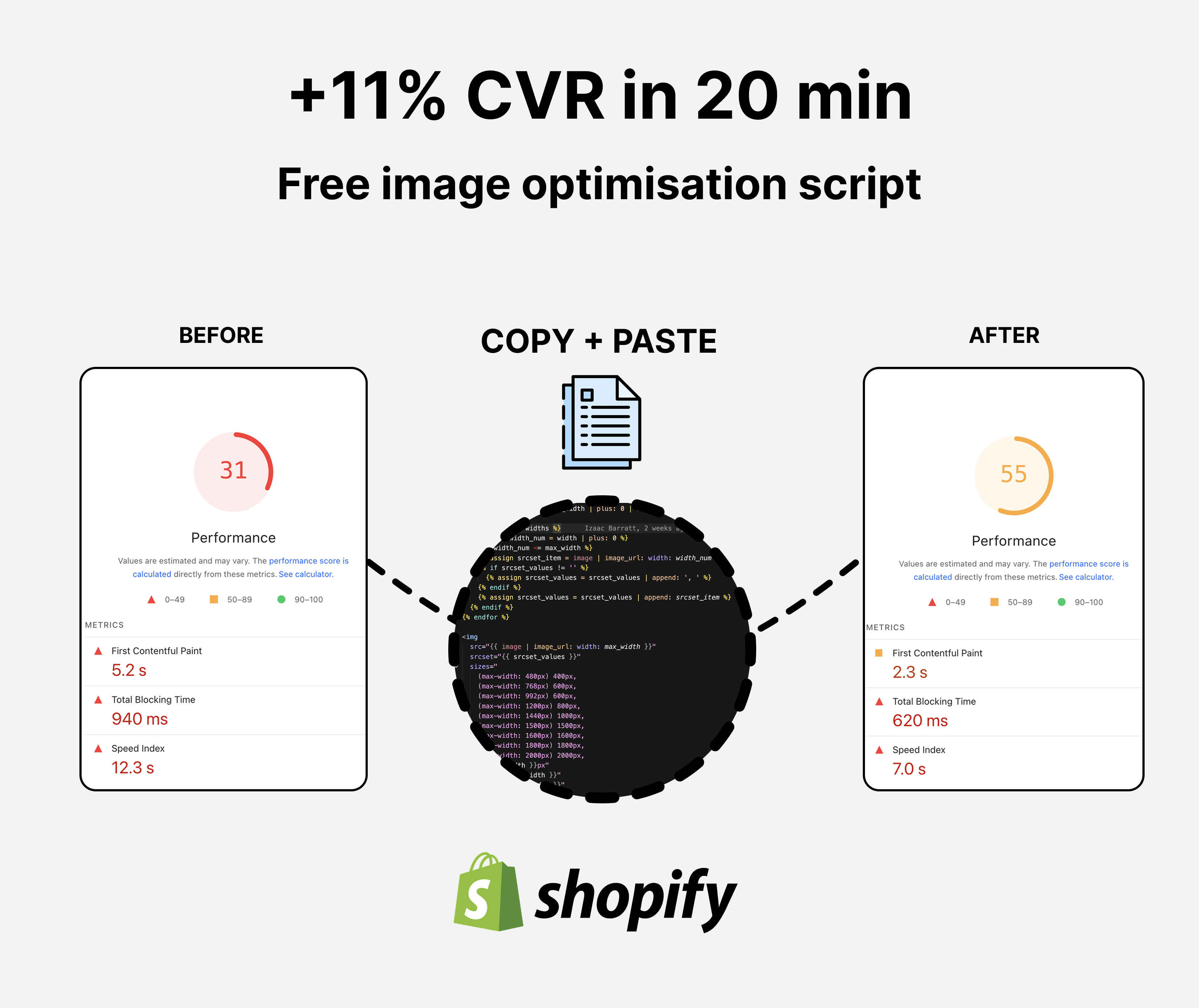Increasing site speed by 20% using Shopify's image compression (free code snippet)
